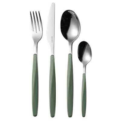 The elongated form also features in this new cutlery set Which differs from all the others in the catalogue in having solid-colour Non-transparent handles White 24 Piece Cutlery Set My Fusion