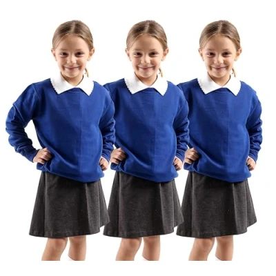 GW CLASSY OUTFIT 3x Girls Boys Kids Round Neck Jumpers (Pack of 3) Long Sleeve Fleece Unisex Sweatshirts School Uniform PE Tops UK Size (13 14 Years, Royal Blue)