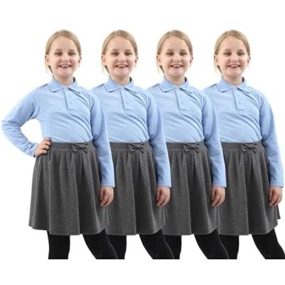 GW CLASSY OUTFIT Boys Girls Polo Long Sleeves School Uniform Shirts (Pack of 4) Kids PE Tops UK Size (11 12 Years, 4X Blue)