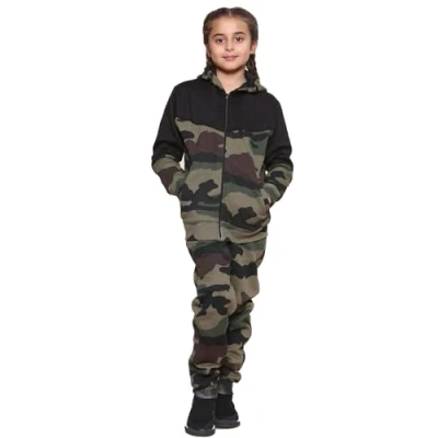 GW CLASSY OUTFIT Boys Kids Tracksuits Tracksuit Set Hoodies Army Panel Hoodie with Jogger Sports Activewear Girls Children Age 5 13 Years (Army Zipper Suit, 6 Years)