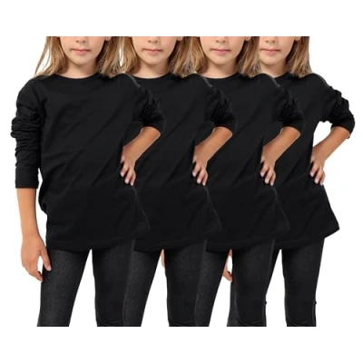 GW CLASSY OUTFIT Girls Boys Plain (Pack of 4) Long Sleeve Shirts Basic School Kids Crew Neck PE T Shirt Tops UK Size (4 13 Years) (UK, Age, 5 Years, 6 Regular, 4X Black)