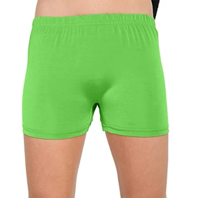 GW CLASSY OUTFIT Girls Kids Metallic/Plain HOT Pants Halloween Dance Summer Fancy Party Disco Shorts Gym Tutu Pant (Green Plain, 7 8 Years)