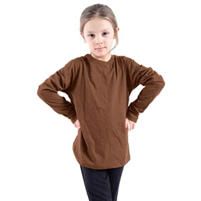GW CLASSY OUTFIT Kids Girls Boys Plain Long Sleeve Crew T Shirts Basic Top School Shirt Tops Neck Uniform Jumper UK Size (Brown, 11 12 Years)