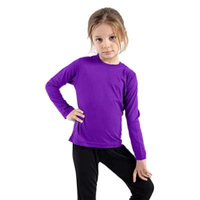 GW CLASSY OUTFIT Kids Girls Boys Plain Long Sleeve Crew T Shirts Basic Top School Shirt Tops Neck Uniform Jumper UK Size (Purple, 4 5 Years)