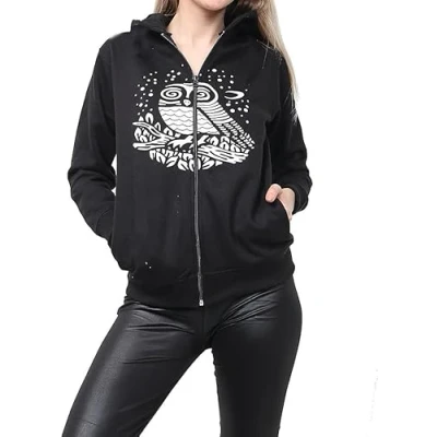GW CLASSY OUTFIT Kids Girls Boys Zipper Hoodie Unisex Fleece Top Jacket PE School Sweat Casual Fashion UK Size 4 13 Years (5 6 Years, Owl Black)