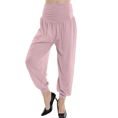 GW CLASSY OUTFIT Ladies Harem Trousers Full Length Ali Baba Pants & Women Palazzo Fitted Yoga Casual Stretch (XXXL 24 26, Baby Pink)