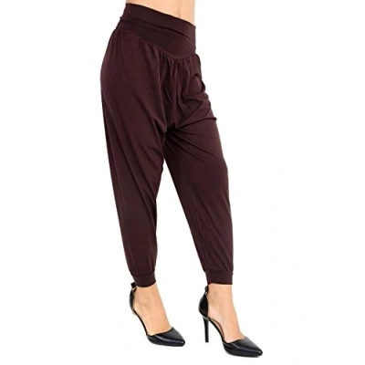 GW CLASSY OUTFIT Ladies Harem Trousers Full Length Ali Baba Pants & Women Palazzo Fitted Yoga Casual Stretch (XXXL 24 26, Brown)