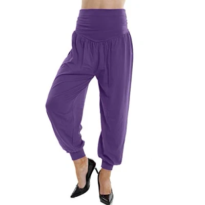 GW CLASSY OUTFIT Ladies Harem Trousers Full Length Ali Baba Pants & Women Palazzo Fitted Yoga Casual Stretch (XXXL 24 26, Purple)