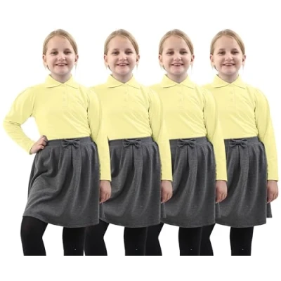 GW CLASSY OUTFIT Pack of 4 Girls Long Sleeves Uniform Polo School Shirts Kids T PE Tops UK Size (11 12 Years, 4X Yellow)