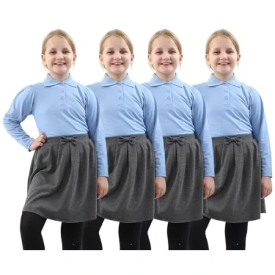 GW CLASSY OUTFIT Pack of 4 Girls Long Sleeves Uniform Polo School Shirts Kids T PE Tops UK Size (11 12 Years, Blue)