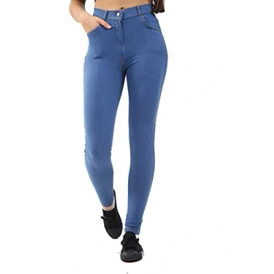 Ladies Denim look Full-Length jeggings Elasticated waist and Regular fit High-quality Cotton, Polyester, durable, stretchy and super comfy fabric, provide you a pleasing wearing experienc. Available in different colors & sizes.