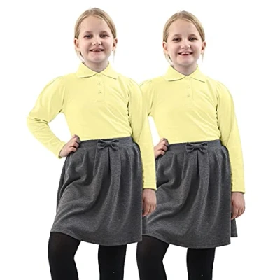 GW CLASSYOUTFIT 2X BoysGirls Plain Long Sleeve Polo School Shirts Uniform PE Top Kids Tops Shirt (5 6 Years, Girls Yellow Sleeve)