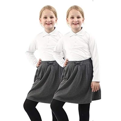 GW CLASSYOUTFIT 2X BoysGirls Plain Long Sleeve Polo School Shirts Uniform PE Top Kids Tops Shirt (8-9 Years, 2X Boys White Long Sleeve)