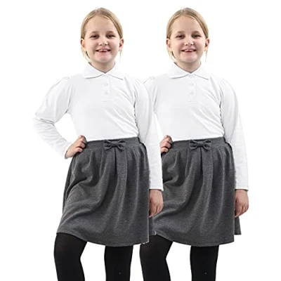 GW CLASSYOUTFIT 2X BoysGirls Plain Long Sleeve Polo School Shirts Uniform PE Top Kids Tops Shirt (9-10 Years, 2X Girls White Long Sleeve)