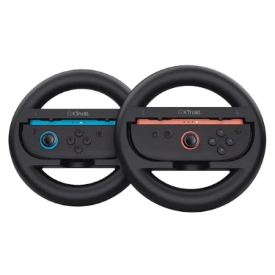 GXTrust 1257 Joy Con Steering Wheels for Nintendo Switch 2, Gaming Racing Wheel Controller Grip Handle, 2 Accessories Mario Kart, Set of Black