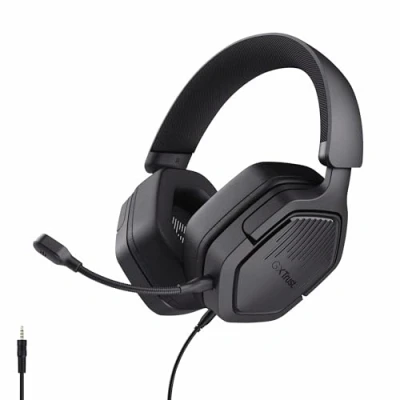 GXTrust 1492 Ravox Gaming Headset for PS5 PS4 Switch PC Mobile, 3.5mm Audio Jack, 50mm Drivers, Padded Headband, Tilting Earcups, Detachable Mic, Over Ear Wired Headphones with Microphone, Black