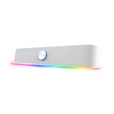 GXTrust 1619W Rhox RGB Illuminated Soundbar, PC Speakers 12W Peak Power, USB Powered Sound Bar, 3.5mm Jack Plug and Play, Stereo Soundbar for Desktop Laptop Computer, White