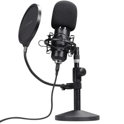 GXTrust 269 Emita II Microphone with Table Stand, Streaming Studio USB Mic Including Shock Mount and Desk Pop Wind Filter for PC, Laptop, Gaming, ASMR, Podcast, Youtube, Black