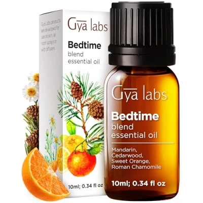 CULTIVATES A SOOTHING AMBIANCE. Our Bedtime Essential Oil Blend is the perfect bedtime oil for diffuser; it infuses a calming scent that instills feelings of relaxation. Add 2-3 drops to a humidifier or oil diffuser for bedroom 30 minutes before bed. A BLEND OF NATURALLY SOOTHING SCENTS. This essential oil bedtime blend is infused with scents such as mandarin essential oil, sweet orange essential oil, cedarwood essential oil and roman chamomile essential oil, inspiring feelings of tranquility. EMBRACE CALM & PEACE. Perfect for aromatherapy, our Bedtime Essential Oil Blend exudes a serene aroma that invokes feelings of peace, perfect to unwind with after a long day. A SWEET INFUSION TO DIY RECIPES. This essential oil for bedtime instills a wonderfully calming scent to homemade products. Elevate your self-care routines by adding a few drops into your own crafts to make scented candles, perfume roll on and more! ETHICALLY SOURCED FOR THE BEST QUALITY. Gya Labs' Bedtime Essential Oil Blend is made from Brazilian mandarin orange rinds, Brazilian orange rinds, Nepali cedarwood stems and Italian chamomile flowers. All our products are certified safe and tested for the highest quality. TESTED FOR SAFETY AND QUALITY. Gya Labs’ Bedtime Essential Oil Blend is tested by GC/MS, MSDS, COA. Do not use on pets, children and during pregnancy. A TRUSTED NAME IN AROMATHERAPY OILS. Gya Labs' Bedtime Essential Oil Blend is sourced from the best botanicals for the best results. We deliver plant power to enrich your self-care routines for better days ahead.