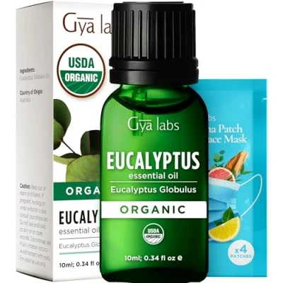 Gya Labs Organic Eucalyptus Essential Oil for Diffuser 100% Pure and Natural Skin, Hair, Soap Making & Humidifier, Premium Aromatherapy (10ml)