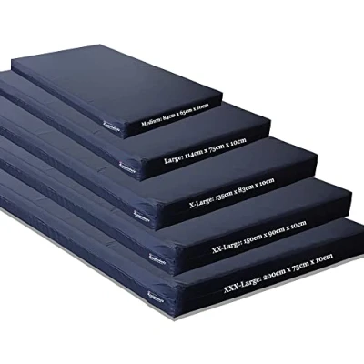 Amazon Marketplace[GYMNASTICS CRASH MATS] are perfect for any professional or beginner gymnast for home, office or garden use, ideal for inside or outdoors practice. The 10cm Thick crash mats ensures safety for the gymnast and are perfect to use in any situation. The Crash Mats are designed to suit the different requirements of landing areas from Gymnastics, High Jump, Stunts, trapeze to name a few. [THICK CRASH MATS] with its 10cm Medium Density Foam provides for an ultra soft surface ensuring any falls, jumps, landing are cushioned giving extra safety for safe landing. Gymnastics & Sports crash mats are of the highest quality that will last for years. We manufacture all gym crash mats in our warehouse in Greater Manchester, UK with the greatest attention to detail and are amongst the most popular as well. [MATERIAL:] The gymnastics crash mats are made from Medium density 5cm and 5cm Reconstituted foam, covered 235gsm 400 Denier Polyester PU, Water Resistant and easy to wipe down, store and carry. [DIMENSIONS;] Medium - 84cm x 68 cm x 10cm ; Large - 114cm x 80cm x 10cm; X-Large - 136cm x 84cm x 10cm; XX-Large 150cm x 90cm x 10cm, XXX-Large 200cm x 75cm x 10cm. [USES OF GYM MATS] Our thick gym mats are used widely by gymnastics professionals, would be gymnasts, schools, nurseries, home gyms, office gyms, fitness gyms as well indoors and outdoors. Some of the uses include: Gymnastics landing, Tumbling & fall protection, Aerial performance protection, Under indoor rock climbing walls. Training classes in law enforcement, police academies, fire fighting, and military combat training facilities. For fall protection during aerial training. Martial arts and other fight takedown training. For physical therapy and rehabilitation, crash and fall protection around exercise equipment or anywhere else where patients may fall and get injured during sessions. Training classes in law enforcement, police academies, fire fighting, and military combat training facilities. Nurseries, Schools, Playgroups to create a safe environment for children. Soundproofing upper floors if used for exercising, training, weightlifting.