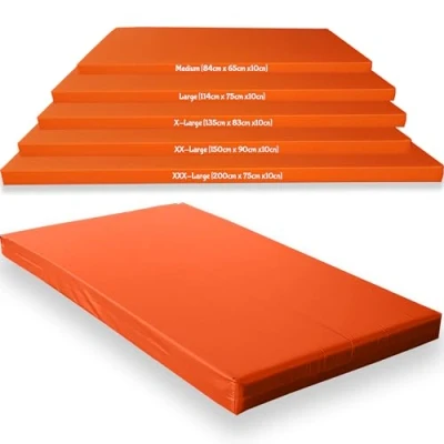 [GYMNASTICS CRASH MATS] are perfect for any professional or beginner gymnast for home, office or garden use, ideal for inside or outdoors practice. The 10cm Thick crash mats ensures safety for the gymnast and are perfect to use in any situation. The Crash Mats are designed to suit the different requirements of landing areas from Gymnastics, High Jump, Stunts, trapeze to name a few. [THICK CRASH MATS] with its 5cm Medium Density Foam and 5cm Reconstituted foam within the mat provides for an ultra soft surface ensuring any falls, jumps, landing are cushioned giving extra safety for safe landing. Gymnastics & Sports crash mats are of the highest quality that will last for years. We manufacture all gym crash mats in our warehouse in Greater Manchester, UK with the greatest attention to detail and are amongst the most popular as well. [CRITICAL FALL HEIGHT] The pads have been tested to British Standard EN1177:2018 for their suitability for a critical fall height of 3 Metres. These Pads are designed to help reduce the impact of a fall by absorbing the shock and minimise the risk of Critical Injuries. [MATERIAL:] The gymnastics crash mats are made from Medium density 5cm and 5cm Reconstituted foam, covered 235gsm 400 Denier Polyester PU, Water Resistant and easy to wipe down, store and carry. [DIMENSIONS;] Medium - 84cm x 68 cm x 10cm ; Large - 114cm x 80cm x 10cm; X-Large - 136cm x 84cm x 10cm; XX-Large 150cm x 90cm x 10cm, XXX-Large 200cm x 75cm x 10cm. [USES OF GYM MATS] Our thick gym mats are used widely by gymnastics professionals, would be gymnasts, schools, nurseries, home gyms, office gyms, fitness gyms as well indoors and outdoors. Some of the uses include: Gymnastics landing, Tumbling & fall protection, Aerial performance protection, Under indoor rock climbing walls. Training classes in law enforcement, police academies, fire fighting, and military combat training facilities. For fall protection during aerial training. Martial arts and other fight takedown training. For physical therapy and rehabilitation, crash and fall protection around exercise equipment or anywhere else where patients may fall and get injured during sessions. Training classes in law enforcement, police academies, fire fighting, and military combat training facilities. Nurseries, Schools, Playgroups to create a safe environment for children. Soundproofing upper floors if used for exercising, training, weightlifting.