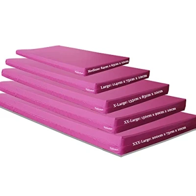 [GYMNASTICS CRASH MATS] are perfect for any professional or beginner gymnast for home, office or garden use, ideal for inside or outdoors practice. The 10cm Thick crash mats ensures safety for the gymnast and are perfect to use in any situation. The Crash Mats are designed to suit the different requirements of landing areas from Gymnastics, High Jump, Stunts, trapeze to name a few. [THICK CRASH MATS] with its 10cm Medium Density Foam provides for an ultra soft surface ensuring any falls, jumps, landing are cushioned giving extra safety for safe landing. Gymnastics & Sports crash mats are of the highest quality that will last for years. We manufacture all gym crash mats in our warehouse in Greater Manchester, UK with the greatest attention to detail and are amongst the most popular as well. [MATERIAL:] The gymnastics crash mats are made from Medium density 5cm and 5cm Reconstituted foam, covered 235gsm 400 Denier Polyester PU, Water Resistant and easy to wipe down, store and carry. [DIMENSIONS;] Medium - 84cm x 68 cm x 10cm ; Large - 114cm x 80cm x 10cm; X-Large - 136cm x 84cm x 10cm; XX-Large 150cm x 90cm x 10cm, XXX-Large 200cm x 75cm x 10cm. [USES OF GYM MATS] Our thick gym mats are used widely by gymnastics professionals, would be gymnasts, schools, nurseries, home gyms, office gyms, fitness gyms as well indoors and outdoors. Some of the uses include: Gymnastics landing, Tumbling & fall protection, Aerial performance protection, Under indoor rock climbing walls. Training classes in law enforcement, police academies, fire fighting, and military combat training facilities. For fall protection during aerial training. Martial arts and other fight takedown training. For physical therapy and rehabilitation, crash and fall protection around exercise equipment or anywhere else where patients may fall and get injured during sessions. Training classes in law enforcement, police academies, fire fighting, and military combat training facilities. Nurseries, Schools, Playgroups to create a safe environment for children. Soundproofing upper floors if used for exercising, training, weightlifting.