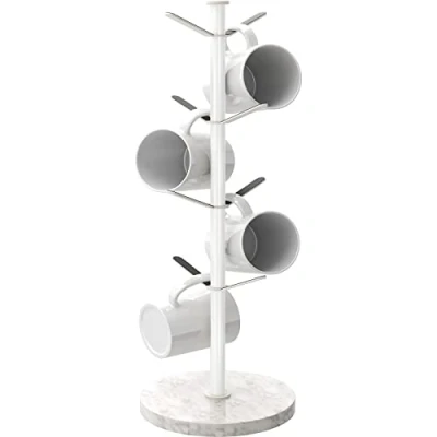 Gypie Marble Mug Tree Stand, 8 Hooks Coffee Cup Holder Storage Rack, Weighted Base Stable Holders for Kitchen Counter Cabinet Cafe (White)