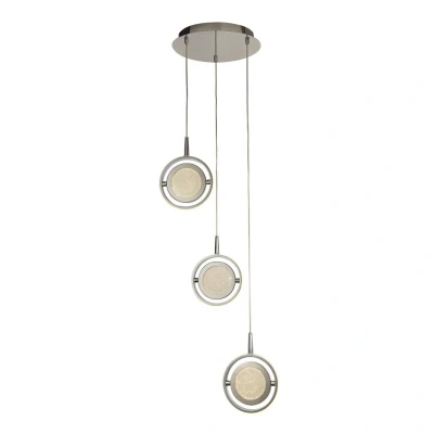 Gyroscope 3 Light Drop LED Ring Pendant Chrome, Crystal Sand 3000K
