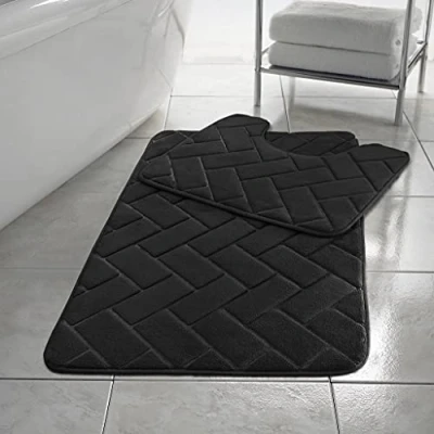 H&F Blocks Bath Memory Foam Bathroom Mat Set 2 Piece Soft Non Slip 50x80cm and 50x40cm Machine Washable Pedestal Rug Extra Absorbent Quick Drying Floor Mats (Black)