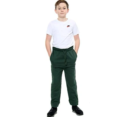 H&F New Kids Unisex Boys Girls Sports School PE Trouser Casual Soft Fleece Jogger Active Yoga Sweatpants Athletic Workout Elasticated Waist Ankle Cuff Jog Pants Age 7 13 (Bottle Green, 9 10 Years)