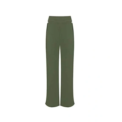 H&F ® New Women's Ladies 2 Pocket Button Trousers Wide Leg Plain Palazzo Casual Wear Pants Size 14 16 18 20 22 24 26 28(14) Khaki Green