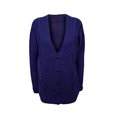 H&F New Women’s Ladies Long Sleeves Chunky Aran Cable Knitted Button Grandad Cardigan Plus Size 8 26(24 26) Royal Blue