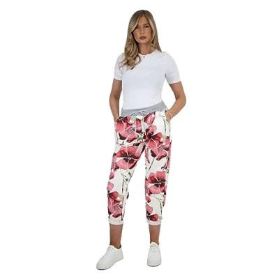 H&F ® Women’s Denim Jogger Sweatpants Ribbed Waistband Trousers Ladies Causal Summer Drawstring Italian Gym Running Pants (as8, Numeric, Numeric_12, Numeric_14, Regular, Coral Pansy)