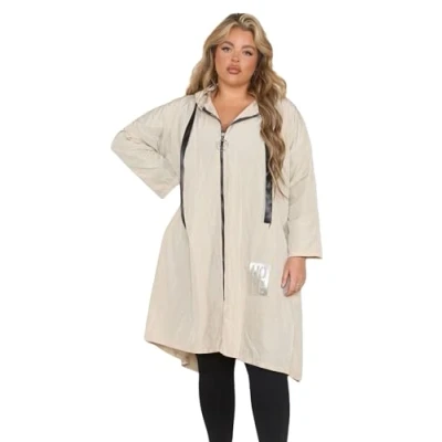 H&F Women’s Italian Long Length Zip Up Hooded Ribbon Cord Lightweight Waterproof Hope Raincoat Jacket Reusable Breathable Outdoor Rain Mac Size (Beige, 16 26)