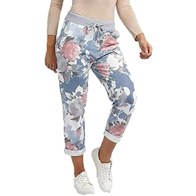 H&F ® Women’s Ladies Denim Jogger Floral, Star Printed Sweatpants Ribbed Waistband Trousers Causal Summer Drawstring Italian Gym Running Pants Size 8 22 (Animal Zebra, 12 14)