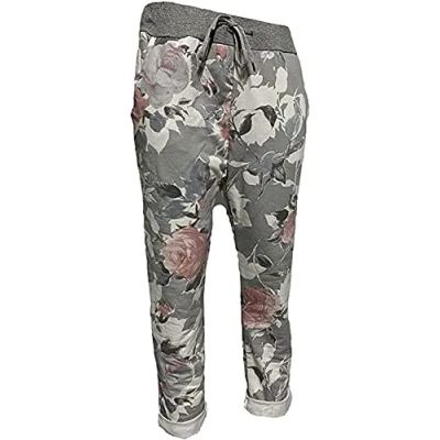 H&F ® Women’s Ladies Denim Jogger Floral, Star Printed Sweatpants Ribbed Waistband Trousers Causal Summer Drawstring Italian Gym Running Pants Size 8 22 (Black Anchor, 16 18)