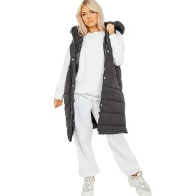 H&F Women's Ladies Long Quilted Gilet Jacket Longline Sleeveless Thick Hooded Side Zip Down Lightweight Coat Bodywarmer Outdoor Padded Waistcoat Size S 3XL(Black, XL)