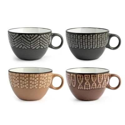 H&H 839832 Ethnic Set of 6 Coffee Mugs, Stoneware, Assorted, cc100