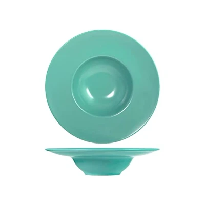 H&H 845390 Denver Set of 6 Pasta Plates, Stoneware, Light Blue, 28 cm