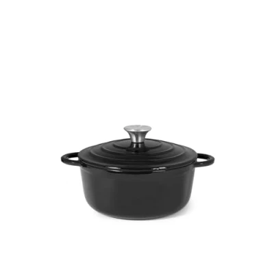H&h Cast Iron Casserole with Lid 22 cm Black