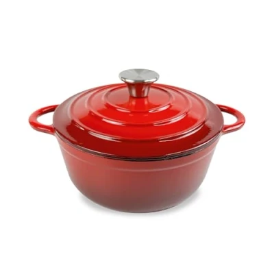 H&H Enamelled Cast Iron Round Casserole Dish 22 cm 2 Handles Red for All Hobs Induction Compatible