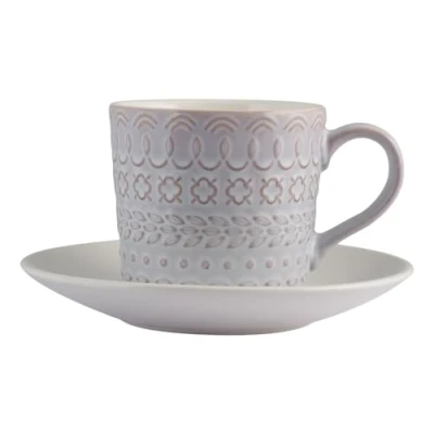 H&H Lilian Pack of 6 Tea Cups with Saucer, Stoneware, Lilac, Units