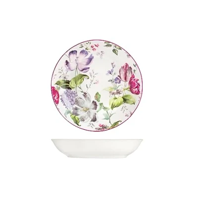 H&H Madam Porcelain Soup Plates, White Floral Design, 21 cm, Set of 12