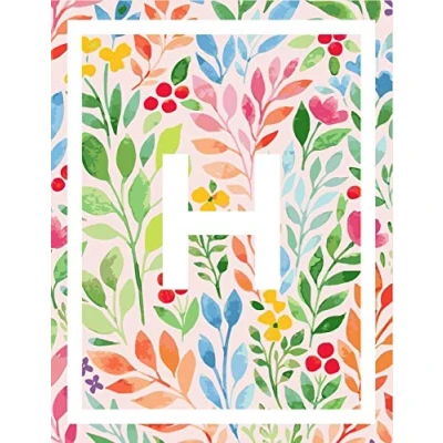 H: H Monogram Notebook Initial 120 Pages With Colorful Flower Cover 8.5 x 11“ Journal For Woman And Girls