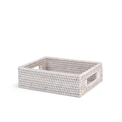 H&H Rectangular Basket with White Rattan Handles, 23 x 18 H7 cm