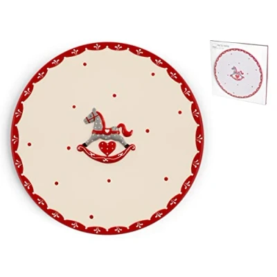H&H Round Cake Plate, Ceramic, White and Red
