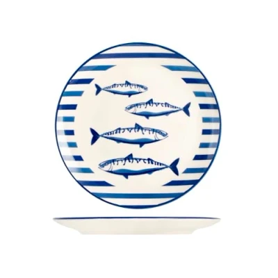 STONEWARE PLATE SET OF 12: Includes 12 x 26cm dinner plates, ideal for updating your dinner service with an elegant and contemporary marine style. SEA THEMED DESIGN - Each plate features a marine pattern that adds a touch of nautical elegance to any meal, perfect for maritime themed dinners or everyday use. OVEN AND MICROWAVE SUITABLE - Made to withstand high temperatures, these stoneware plates can be safely used in both the oven and microwave. EASY TO CLEAN: The quality finish allows for quick and easy cleaning, with dishes that are completely dishwasher safe, ideal for worry-free use. DURABILITY AND STYLE: Sturdy stoneware ensures that these plates retain their beauty and functionality over time, combining durability with refined aesthetics.