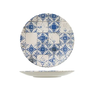 H&H Set of 12 Plates Lotus Piatti Piani Bianco/Blu