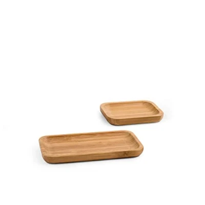 H&H Set of 2 Rectangular Bamboo Plates